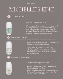 Water, Butylene Glycol, Isostearyl Isostearate, Glycosyl Trehalose, Niacinamide, Tranexamic Acid, Olive Oil Polyglyceryl-6 Esters, Hydrogenated Starch Hydrolysate, Sorbitol, Polyglyceryl-3 Distearate, Glycerin, 1,2-Hexanediol, Octyldodecanol, Hippophae Rhamnoides Fruit Extract, Hydroxyacetophenone, (-)-alpha-Bisabolol, Sodium Polyacryloyldimethyl Taurate, Lauryl Glucoside, Ribes Nigrum (Black Currant) Seed Oil, Propanediol, 3-O-Ethyl Ascorbic Acid, Dipotassium Glycyrrhizate, Betaine, Xanthan Gum, Glyceryl Caprylate, Phytosphingosine, Bakuchiol, Thuja Orientalis Leaf Extract, Glucosyl Ceramide, Zanthoxylum Piperitum Fruit Extract, Pentylene Glycol, Tocopherol, Glyceryl Stearate Citrate, Saccharomyces/Viscum Album (Mistletoe) Ferment Extract, Lactobacillus/Soybean Ferment Extract, Jasminum Officinale (Jasmine) Flower Water, Ethylhexylglycerin, Polygonum Cuspidatum Root Extract, Phospholipids, Helianthus Annuus (Sunflower) Seed Oil Unsaponifiables, Akebia Quinata Extract, Saccharomyces/Imperata Cylindrica Root Ferment Extract, Madecassoside, Lactobacillus/Punica Granatum Fruit Ferment Extract, Saccharomyces/Barley Seed Ferment Filtrate, Lactobacillus/Pear Juice Ferment Filtrate, Cymbopogon Nardus (Citronella) Oil, Rosa Damascena Flower Water, Pimpinella Anisum (Anise) Fruit Extract, Cardiospermum Halicacabum Flower/Leaf/Vine Extract, Helianthus Annuus (Sunflower) Seed Oil, Vanilla Planifolia Fruit Extract, Prunus Persica (Peach) Fruit Extract, Cholesterol, Rosmarinus Officinalis (Rosemary) Leaf Extract