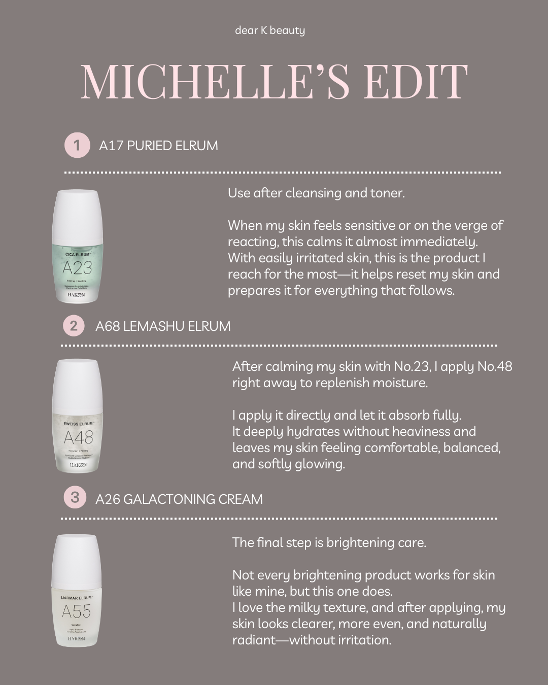 Water, Propanediol, Butylene Glycol, Glycerin, Niacinamide, Polyglyceryl-10 Myristate, 1,2-Hexanediol, Hydrolyzed Collagen Extract, Xylitylglucoside, Anhydroxylitol, Carbomer, Arginine, Paeonia Suffruticosa Root Extract, Centella Asiatica Extract, Ammonium Acryloyldimethyltaurate/VP Copolymer, Hydroxyacetophenone, Xylitol, Boswellia Carterii Oil, Saccharomyces/Rice Ferment Filtrate, Sodium Hyaluronate, Glucose, Adenosine, Rehmannia Glutinosa Root Extract, Ethylhexylglycerin, Cuscuta Australis Seed Extract, Caesalpinia Sappan Bark Extract, Polyglutamic Acid, Akebia Quinata Extract, Pentylene Glycol, Hydroxyethyl Acrylate/Sodium Acryloyldimethyl Taurate Copolymer, Ceramide NP, Ceramide NS, Ceramide AS, Ceramide AP,