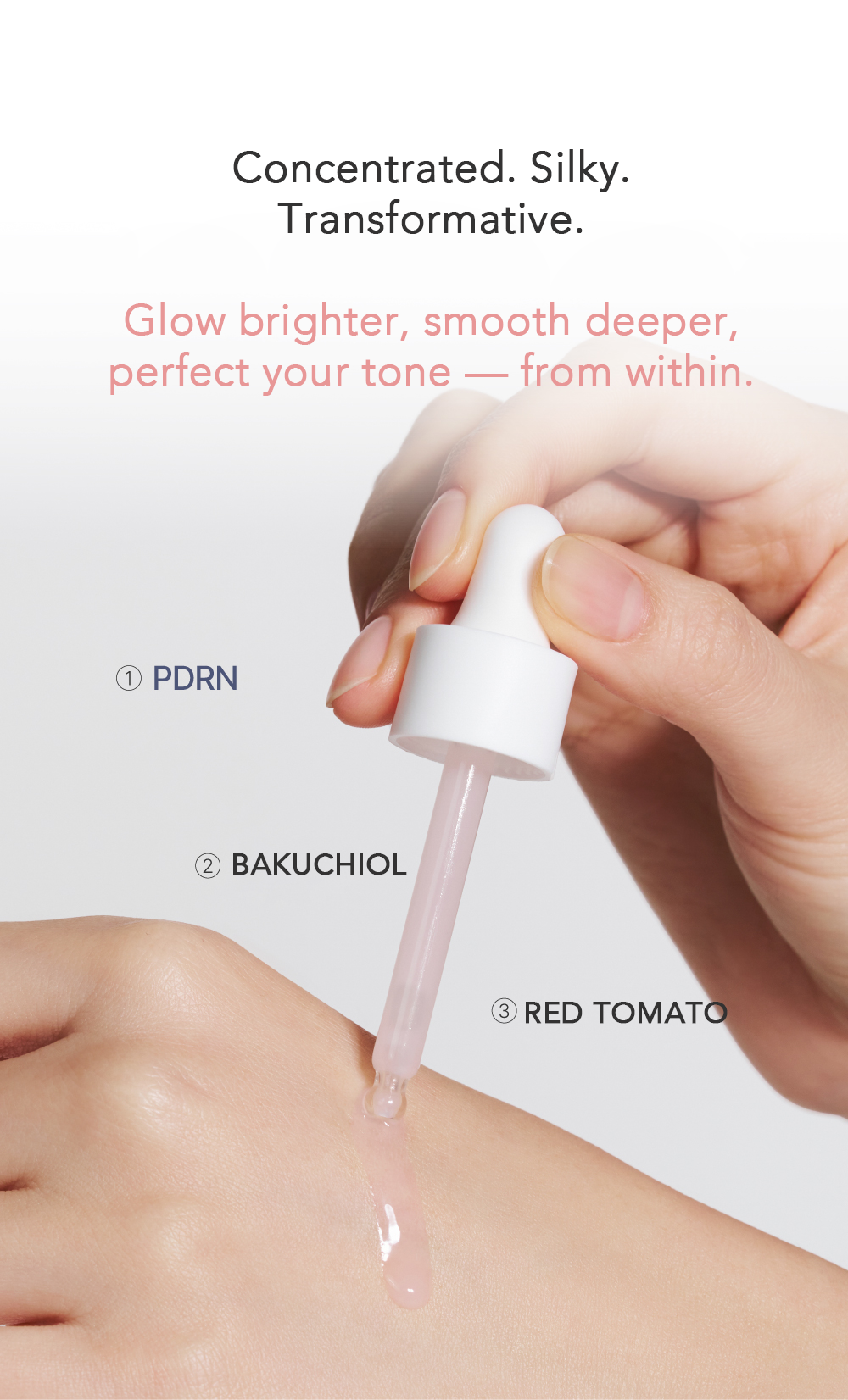 Water, Propanediol, Butylene Glycol, Glycerin, 1,2-Hexanediol, Niacinamide, Trehalose, Bakuchiol, Solanum Lycopersicum (Tomato) Fruit Extract, Betaine, Helianthus Annuus (Sunflower) Seed Oil, Ethylhexyl Olivate, Sodium Acrylates Copolymer, Xanthan Gum, Polyglyceryl-4 Oleate, Sodium Polyacrylate, Glyceryl Stearate, Adenosine, Sodium Hyaluronate, Xylitol, Caprylic Acid, Centella Asiatica Extract, Astragalus Membranaceus Root Extract, Houttuynia Cordata Extract, Oryza Sativa Bran Extract, Lactobacillus Ferment Lysate, Sodium DNA, Lithospermum Erythrorhizon Extract, Tocopherol, Ethylhexylglycerin, Sodium Chloride, Glutamine, Potassium Chloride, Calcium Chloride, Sodium Pyruvate, Isoleucine, Leucine, Valine, Threonine, Magnesium Sulfate, Inositol, Phenylalanine, Serine, Glycine, Methionine, Tryptophan, Thiamine HCl, Folic Acid, Riboflavin